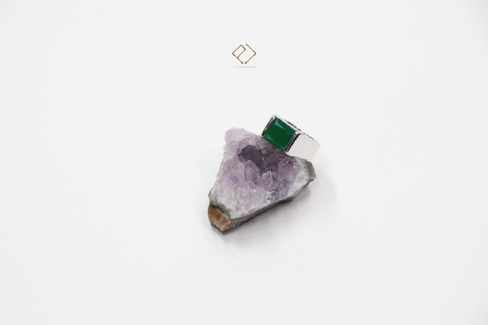 خاتم رجالي فضة عيار 925 مرصع بحبات الزركون الصافي و حجر زمرد