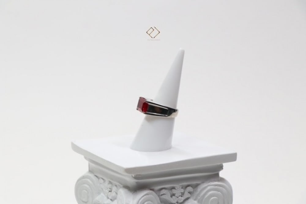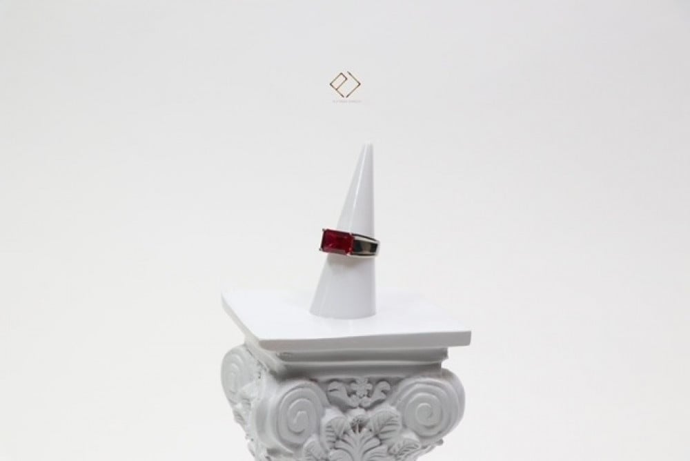 خاتم رجالي فضة 925 و حجر روبي طبيعي معالج