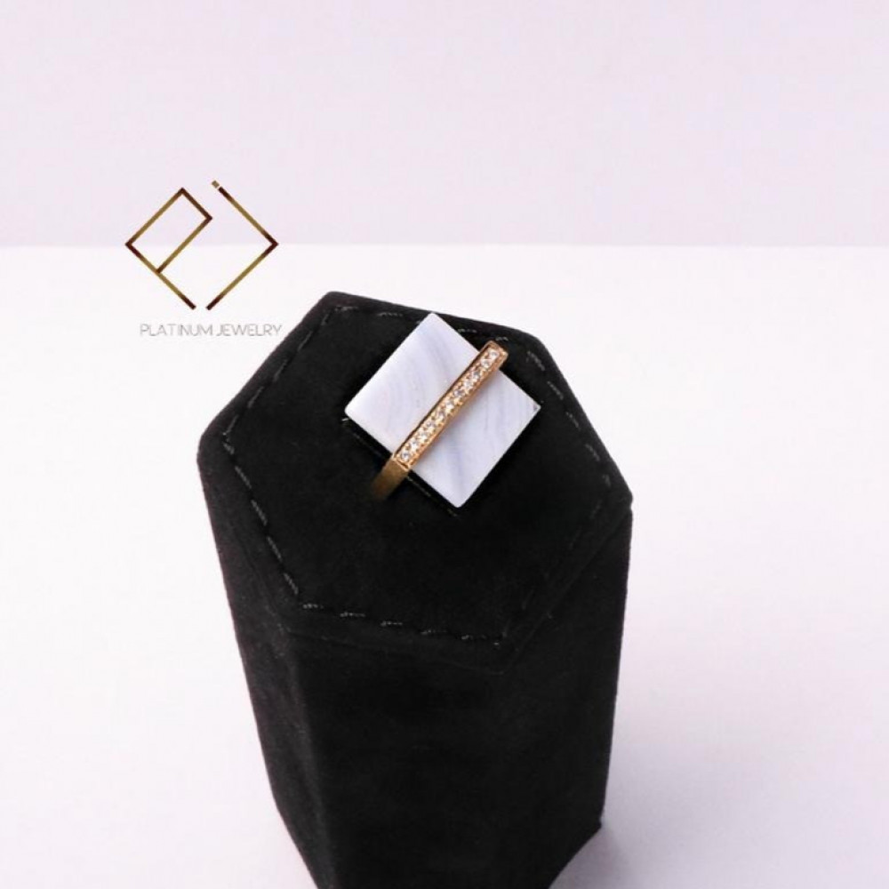 خاتم فضة عيار 925 مطلي ذهب اصفر مرصع بالزركون و حجر طبيعي