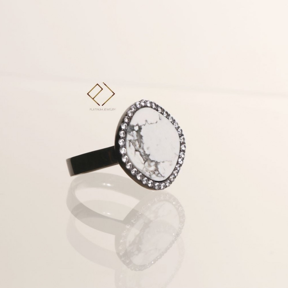خاتم شفاف ذهب ابيض و حجر طبيعي معالج