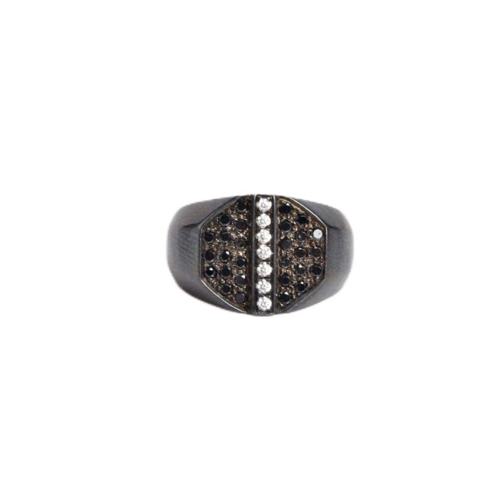 خاتم فضة مرصع بحبات الزركون الصافي الابيض و الاسود