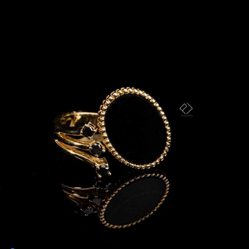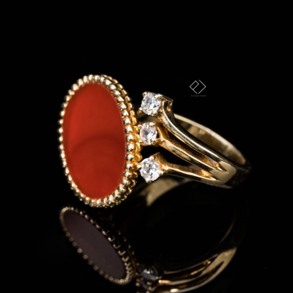 خاتم فضة مطلي ذهب عيار 925 حجر طبيعي و زركون