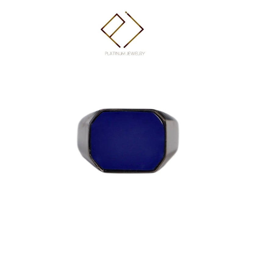 خاتم مربع فضة عيار 925 و حجر عقيق طبيعي