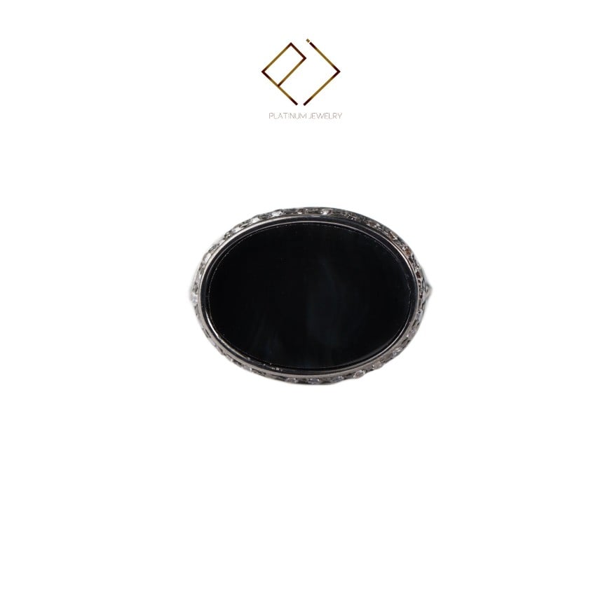 خاتم ملكي فضة مرصع بحبات الزركون و حجر طبيعي