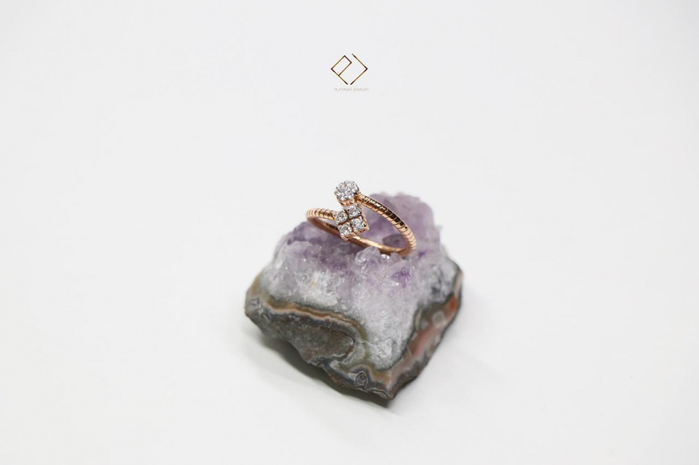 خاتم نسائي ذهب عيار 18 مرصع بالزركون