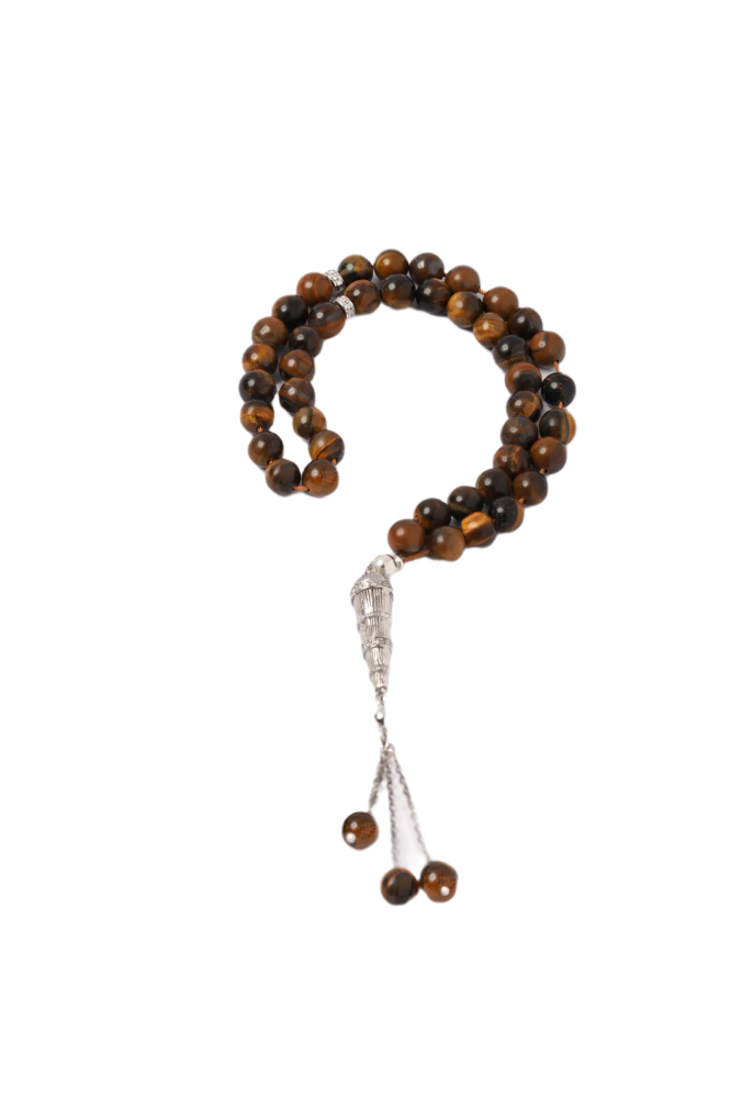 سبحة حجر تايغر طبيعي و شراب فضة عيار 925