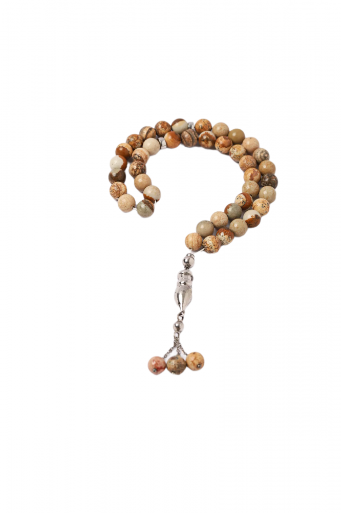 سبحة حجر تايغر طبيعي و شراب فضة عيار 925