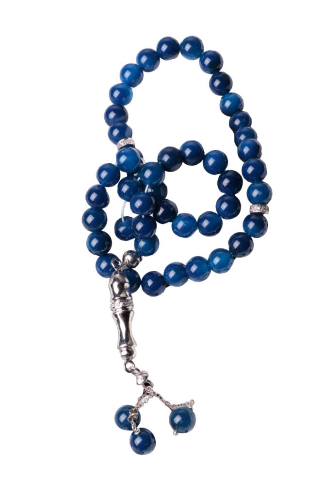 سبحة حجر عقيق برازيلي طبيعي شراب فضة عيا...