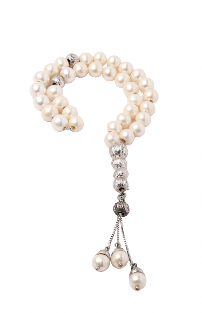 سبحة حجر لولو زراعي معالج و شراب فضة