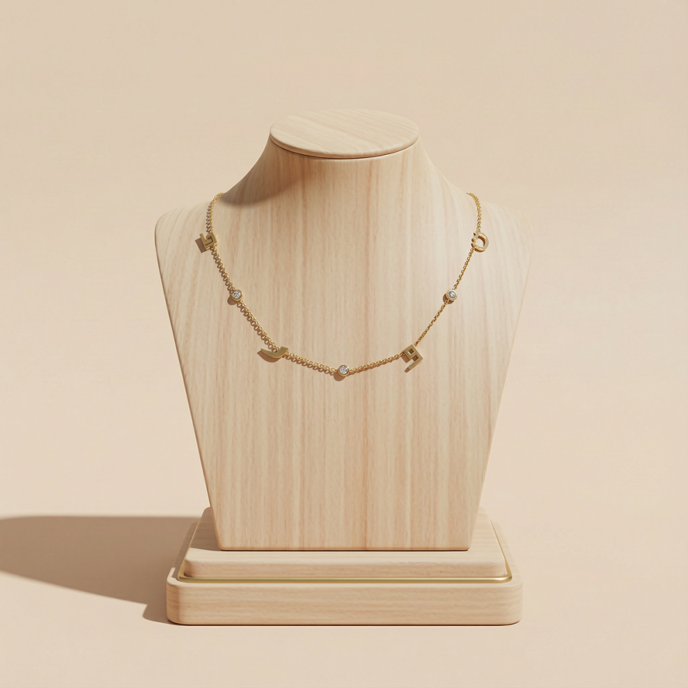 جربي الآن سلسال ذهب من أربعة أحرف واستمتعي بتصميم فريد من نوعه يناسب ذوقك تمامًا