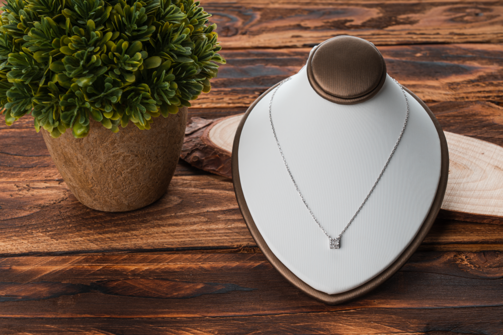 سلسال من الذهب الأبيض، مرصعة بحبات من الألماس ينتصفه قطع من الألماس الباقيت، يمنحك حضورا استثنائيا.